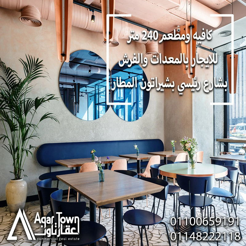 • كافيه ومطعم مفروش وشغال للايجار بالمعدات والفرش بشارع رئيسي بشيراتون المطار