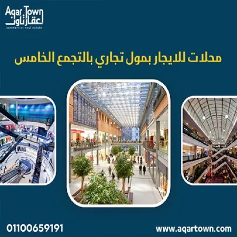 محلات تجارية للإيجار للشركات والبراندات فقط بمول تجاري بالتجمع الخامس بالقرب من شارع التسعين .