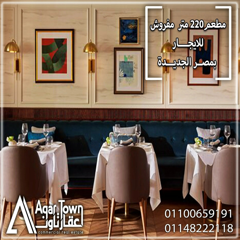 مطعم مفروش وشغال للايجار بالمعدات والفرش بمصر الجديدة لوكيشن مميز مناسب للبراندات والمطاعم السوري